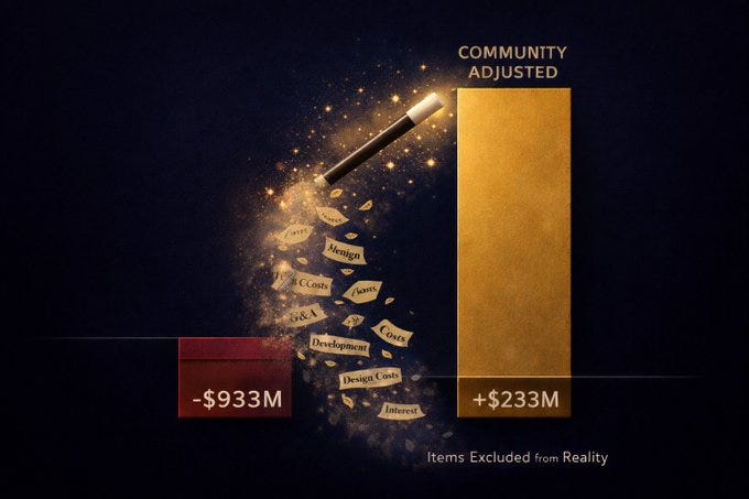 Adam Neumann não apenas dirigia a WeWork. Ele tentou registrar a marca da palavra “We” por 6 milhões de dólares. Descreveu sua empresa imobiliária como “um estado de consciência” que iria “mudar o mundo”. Inventou uma métrica chamada “EBITDA Ajustado pela Comunidade” que excluía custos de marketing, G&A, desenvolvimento e design dos cálculos de lucro. Isso transformou um prejuízo de 933 milhões de dólares em positivos 233 milhões. O fundador da Bond Research, Adam Cohen: “Nunca vi a expressão ‘EBITDA ajustado pela comunidade’ na minha vida.”